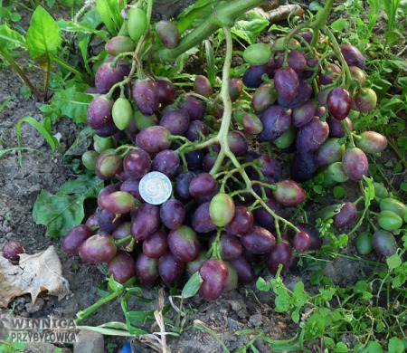 W naszej winnicy uprawiamy łącznie 160 gatunków winogron, w większości deserowych wielkoowocowych, z których część, już sprawdzona do panujących warunków - na owoc do handlu, a część jako materiał doświadczalny, w celu ustalenia ich przydatności do panujących tutaj warunków.