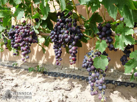 Grona duże, stożkowe o masie 500-700g. Jagody kuliste, ciemno brązowe do prawie czarnych o charakterystycznym czekoladowym posmaku.